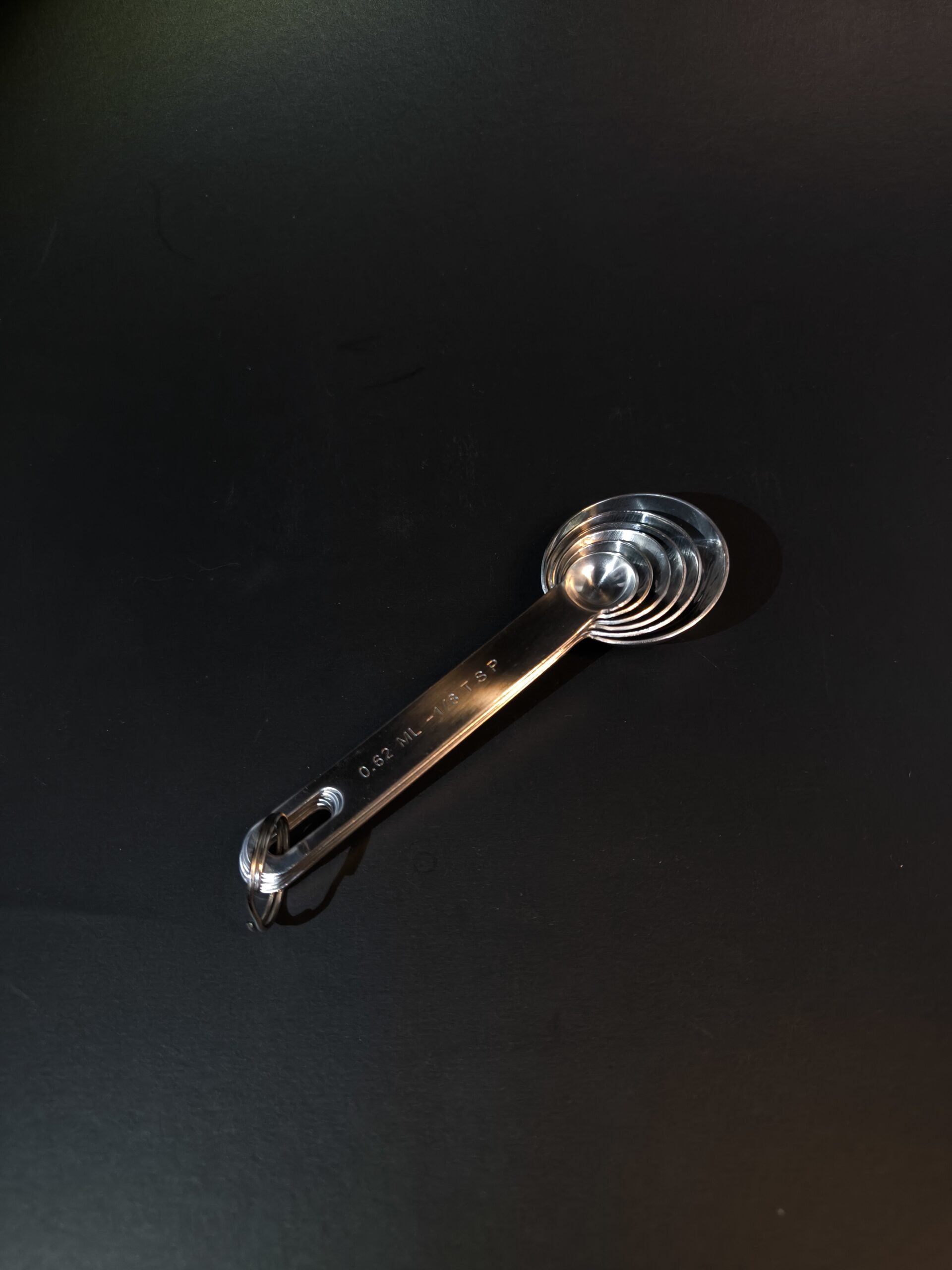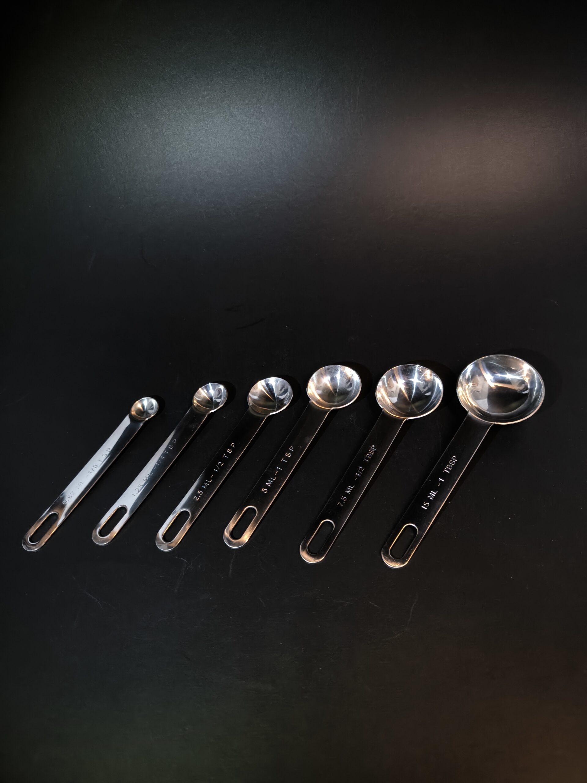 Six measuring spoons made from steel