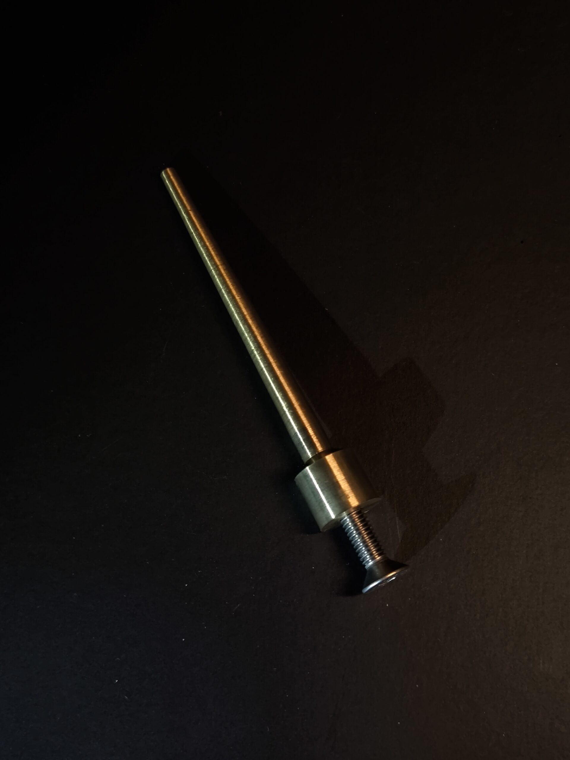 The brass spindle is screwed to the base and can be unscrewed if necessary.